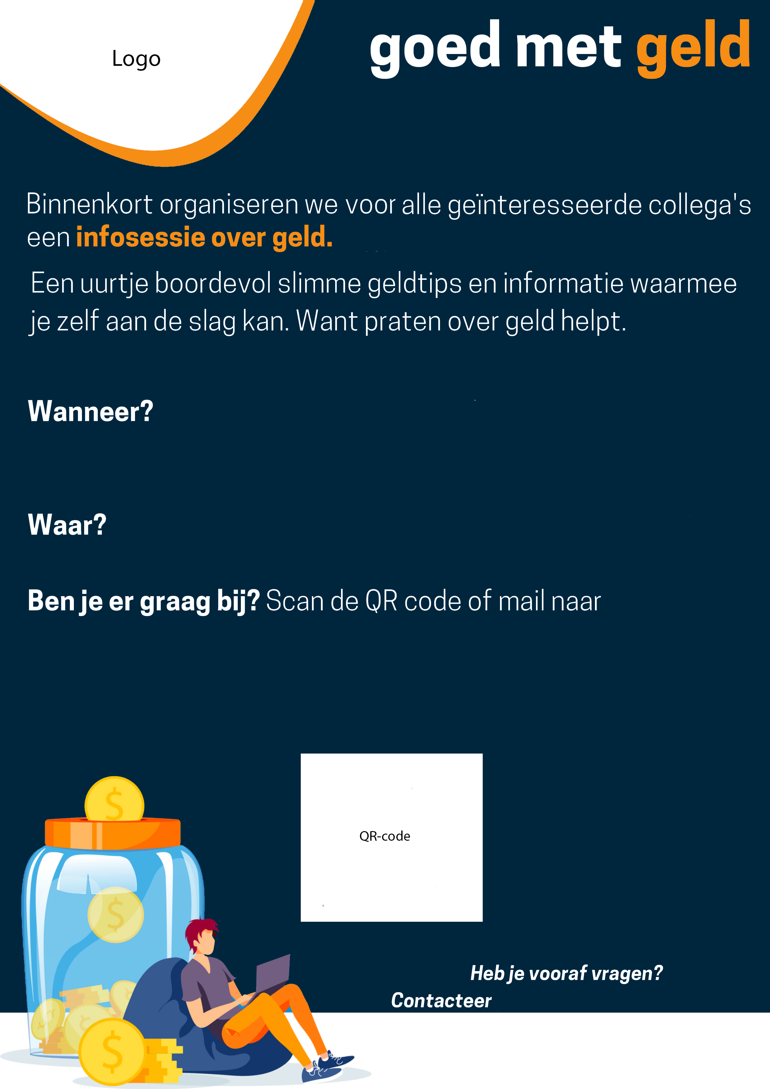 Een succesvol beleid is gekend en gedragen. Dat geldt ook voor financieel welzijn. Bied jij een aanbod aan je medewerkers aan of wil je medewerkers de weg wijzen naar goede informatiebronnen of professionele hulpverlening? Communiceer dan op een laagdrempelige manier.